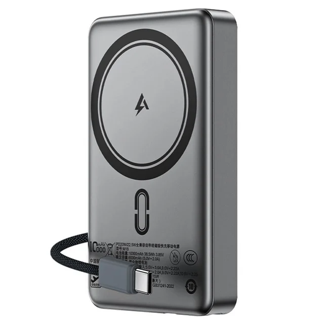 پاوربانک وایرلس 10000 مگنتی ایس فست ACEFAST M18 توان 20 وات همراه با کابل متصل