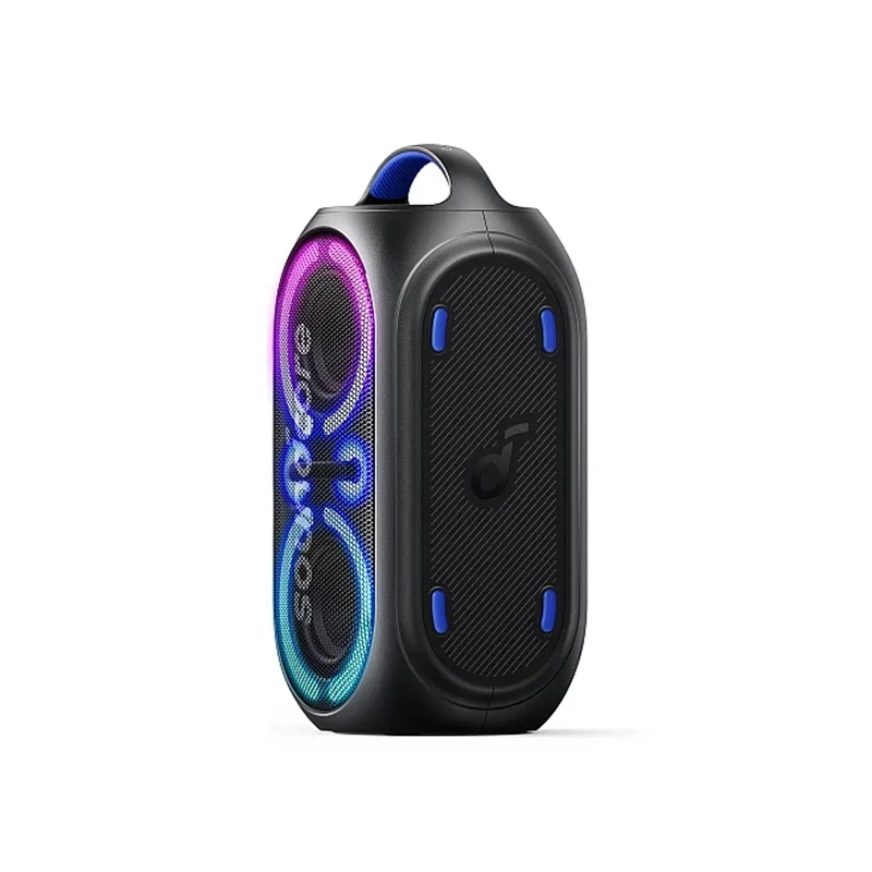 یکی از نکات قابلتوجه در مورد این اسپیکر، کیفیت ساخت بالای آن است. برند انکر باسابقهای درخشان در تولید محصولات صوتی و الکترونیکی، در طراحی و ساخت این اسپیکر هم از مواد باکیفیت استفاده کرده است. بدنه مقاوم و مشبک این اسپیکر علاوه بر افزایش دوام، ظاهر جذابی هم به آن بخشیده است. تمامی کلیدهای کنترل بهصورت دقیق و با دسترسی آسان طراحیشدهاند که امکان مدیریت موسیقی و تنظیمات دیگر را بهراحتی برای کاربران فراهم میکند. یکی دیگر از ویژگیهای جذاب این اسپیکر، نورپردازی داخلی آن است که به ریتم موسیقی واکنش نشان داده و جلوهای پویا به محیط اضافه میکند. این نورپردازی که از طریق اپلیکیشن Soundcore قابلتنظیم است، میتواند حالوهوای جشنها و مهمانیها را به سطح جدیدی ارتقا دهد. شما میتوانید از میان حالتهای مختلف نورپردازی، گزینهای را انتخاب کنید که با فضای مهمانی یا سلیقه شما همخوانی داشته باشد. این ویژگی باعث شده تا اسپیکر نهتنها بهعنوان یک دستگاه پخش موسیقی، بلکه بهعنوان یک ابزار سرگرمی کامل شناخته شود.