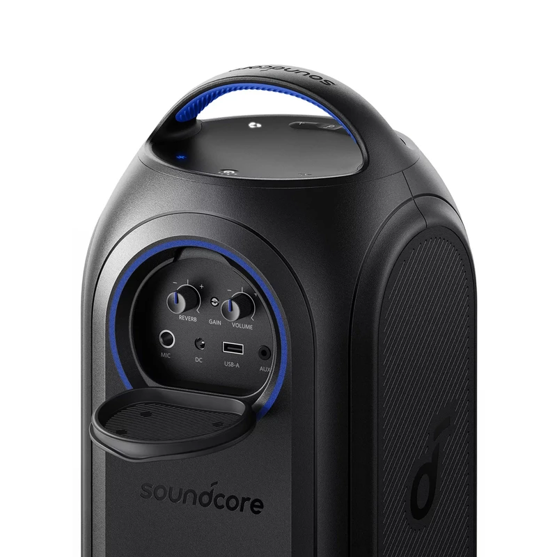 ازنظر درگاههای ارتباطی، Soundcore Rave Party 2 تنوع بالایی را ارائه میدهد. این اسپیکر با پشتیبانی از بلوتوث نسخه ۵، اتصال بیسیم پایدار و بدون وقفه را تا فاصله ۱۰ متر فراهم میکند. همچنین، وجود ورودی AUX امکان اتصال دستگاههای قدیمیتر یا دستگاههایی که از بلوتوث پشتیبانی نمیکنند را به اسپیکر فراهم کرده است. علاوه بر این، وجود ورودی میکروفون ویژگی منحصربهفردی است که به کاربران امکان میدهد تا از اسپیکر برای سخنرانیها استفاده کنند. این قابلیت، مخصوصاً برای افرادی که به دنبال یک اسپیکر چندمنظوره هستند، بسیار کاربردی است. اپلیکیشن Soundcore هم یکی دیگر از مزایای این اسپیکر است. این اپلیکیشن به کاربران امکان میدهد تا تنظیمات صدا، نورپردازی و حتی اتصال اسپیکرهای دیگر را بهصورت کامل مدیریت کنند. همچنین، کاربران میتوانند از طریق این اپلیکیشن به پروفایلهای صوتی متنوع دسترسی داشته و صدای اسپیکر را مطابق با نوع موسیقی یا نیاز خود تنظیم کنند.