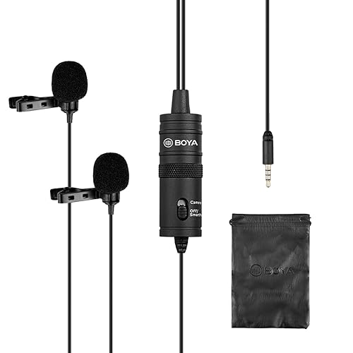 میکروفون یقه ای بویا BY-M1DM برای مصاحبهها، پادکستها، تولید محتوا و سایر کاربردهایی که نیاز به ضبط صدای دو نفر بهصورت همزمان دارند، ایدهآل است.