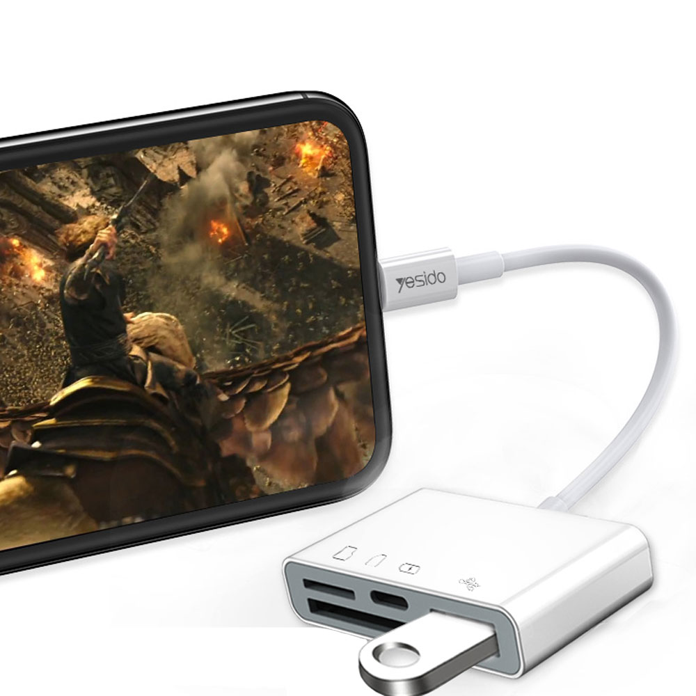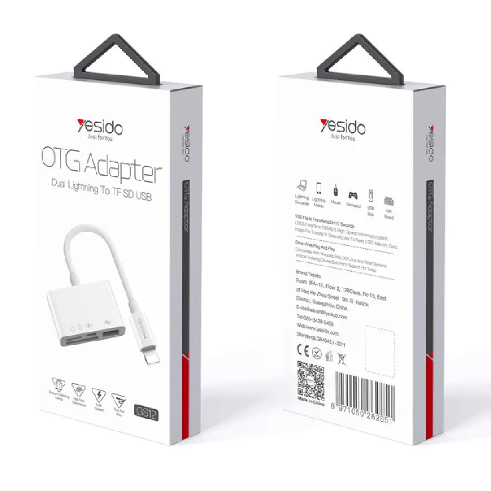 کمپانی یسیدو اولین کابل OTG همه کاره مخصوص گوشیها و تبلتهای اپل بدون نیاز به نصب هیچگونه نرم افزار را روانه بازار کرده است ، دیگر نگران پر شدن حافظه گوشی خود نباشید ، به راحتی توسط کابل لایتنینگ OTG یسیدو مدل GS12 ، فلش مموری ، میکرواس دی کارت و اس دی کارت تا ظرفیت 512 گیگا بایت را به گوشی و یا تبلت آیفون خود متصل کرده و فایلها ، فیلم و عکس را از گوشی به فلش و مموری یا بلعکس انتقال دهید ، این کابل USB 3.0 میباشد و از کلیه فلش مموریهای USB2.0 و USB 3.0 و مموری کارتهای میکرو اس دی ،اس دی کارت پشتیبانی میکند ، سرعت انتقال دیتا بسته به سرعت فلش مموری و مموری کارت شما تا 150 مگابایت در ثانیه متغیر میباشد ، همچنین با کمک این محصول اتصال کیبرد ، موس و گیم پد به گوشی و تبلت آیفون میسر میگردد .از ویژگیهای این محصول قابلیت اتصال دوربینهای عکاسی و فیلمبرداری با پشایبانی از OTG به گوشی شما میباشد ، همچنین این کابل مجهز به مادگی لایتنینگ میباشد که امکان شارژ کردن گوشی هنگام کار با این مبدل را میسر میسازد.