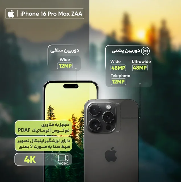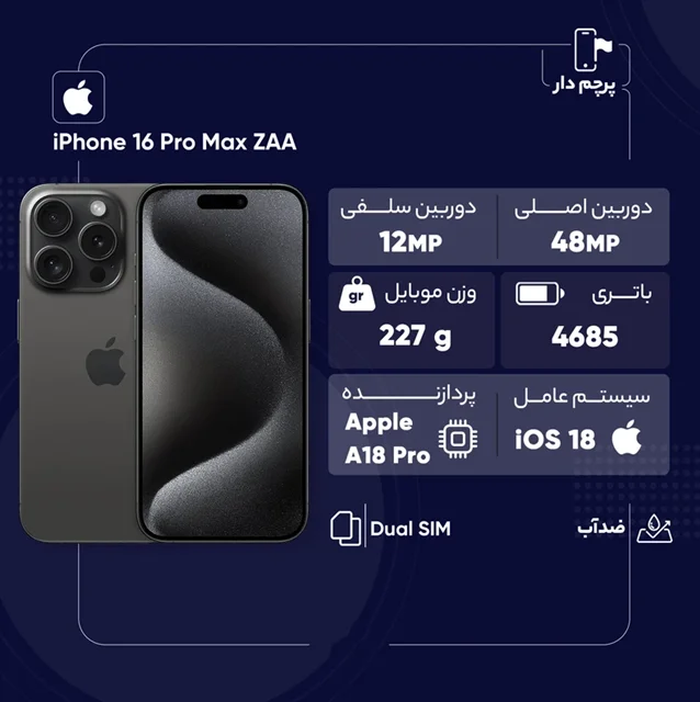 گوشی اپل iPhone 16 Pro Max ZAA رجیسترشده دو سیمکارت 256 گیگابایت با رم 8 گیگابایت
