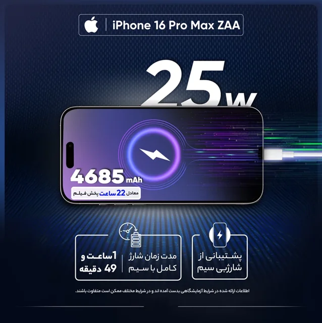 یکی دیگر از جنبههای مهم آیفون 16 پرو مکس، باتری بزرگ آن است. این گوشی با یک باتری 4685 میلیآمپر ساعتی به بازار آمده است که به لطف بهینهسازیهای نرمافزاری و سختافزاری، شارژدهی بسیار خوبی دارد. کاربران میتوانند در استفادههای روزمره، حدود 1.5 تا 2 روز از گوشی استفاده کنند بدون اینکه نیاز به شارژ مجدد داشته باشند. قابلیت شارژ سریع همچنان از طریق پورت USB-C (که جایگزین پورت لایتنینگ شده است) وجود دارد. این گوشی همچنین از شارژ سریع 25 واتی بیسیم پشتیبانی میکند به کاربران اجازه میدهد تا بدون استفاده از کابل، گوشی خود را به راحتی و با سرعت شارژ کنند.