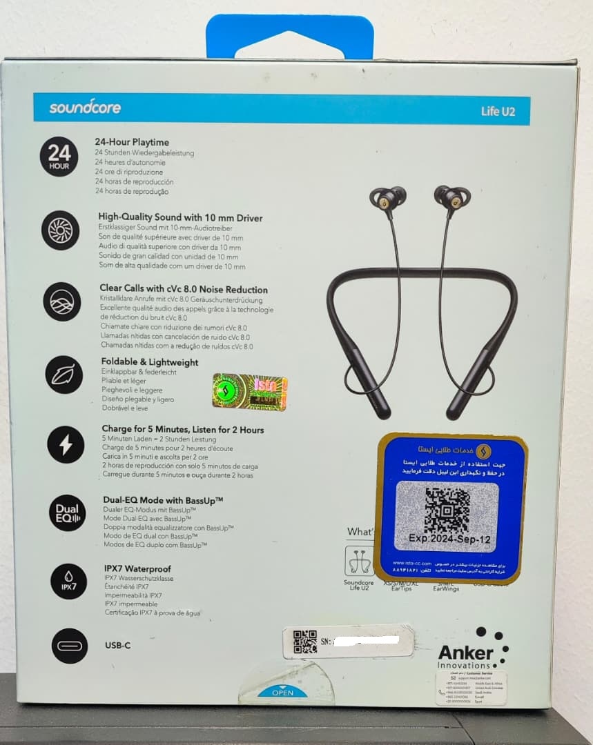 هدفون بلوتوثی مدل Life U2 محصولی با کیفیت که توسط برند ساندکور طراحی و روانه بازا شده است. برند ساندکور یک برند از زیر مجموعه انکر(ANKER) است.این هدفون دورگردنی امکان گوش دادن به موسیقی را هنگام ورزش کردن و فعالیت های روزمره برای شما به ارمغان میآورد. این هدفون با قطر درایو 10 میلیمتری صدایی باکیفیت و بیس مناسب را برایتان پخش خواهد کرد. این محصول ساندکور دارای گواهینامه IPX7 است که نشان دهنده ضدآب بودن محصول است. بنابراین با خیالی راحت حتی در آبوهوای بارانی میتوانید به موسیقی گوش دهید. گوشی های سیلیکونی Life U2 نیز از خاصیت آهنربایی بهره میبرند و با اتصال دو گوشی به صورت مگنتی به یکدیگر در زمانهای عدم استفاده از هندزفری، از گره خوردن آن جلوگیری کنید.پورت شارژ هدفون بلوتوثی مدل Life U2 روی بدنه گردنی قرار گرفته و شما قادرید به راحتی توسط کابل USB-C باتری داخلی هندزفری را شارژ کنید. گفتنی است برای این محصول یک باتری 500 میلیآمپرساعتی درنظر گرفته شده که در دو ساعت شارژ شده و امکان استفاده تا 24 ساعت را به شما خواهد داد.