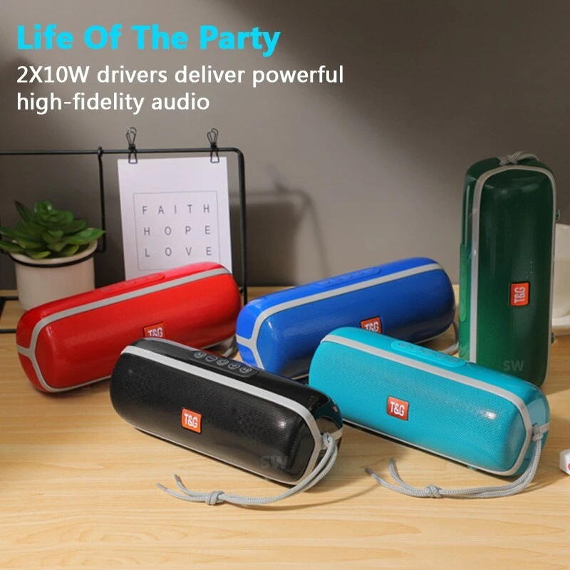 اسپیکر بلوتوثی TG-183 با 730 گرم وزن و با طراحی بسیار زیبا با طرح مرسدس بنز و با توان خروجی 10 وات صدای واضح و با کیفیتی را برای شما پخش مینماید. اسپیکر وایرلس TG-183 تنها برای پخش موسیقی کاربرد ندارد و میتوانید از طریق این اسپیکر خوش ساخت به کانال های رادیوی دسترسی داشته باشید . از چند طریق میتوانید آهنگ های خود را با استفاده از اسپیکر TG-183 پخش نمایید، با اتصال گوشی موبایل، تبلت و کامپیوتر یا قرار دادن کارت حافظه SD یا Flash Memory همیشه موسیقی مورد علاقه، در دسترس شما خواهد بود. گجت های هوشمند خود را میتوانید از طریق بلوتوث یا کابل AUX به اسپیکر بلوتوث TG-183 متصل کنید. اسپیکر وایرلس TG-183 از باتری قابل شارژ با حجم 2400 میلی آمپر بهره میبرد و تا 10 ساعت به صورت مداوم قادر به کار کردن است و برای شارژ کردن این دستگاه 3 ساعت وقت لازم است . با این اسپیکر زیبا و طراحی فوق العاده میتوانید از صدای شفاف و استریو لذت ببرید .با قابلیت TWS میتولنید از وصل شدن دو اسپیکر به هم صدای بیشتری را تجربه کنید همچنین این اسپیکر برند T&G گواهینامه IPX5 دارد که مقاومت بالایی در برابر آب و گرد و غبار دارا می باشد .